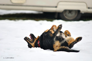 Na pierwszy ogień poszła Magda z Rico. Aneta dała im niezły wycisk: chodzenia przy nodze w takim tempie i w takiej ilości roczny młodziak by nie wytrzymał! Nie mówiąc już o przywołaniu, przez całą szerokość placu! Koszmar. Nic dziwnego, że w pewnym momencie Rico powiedział dość!
